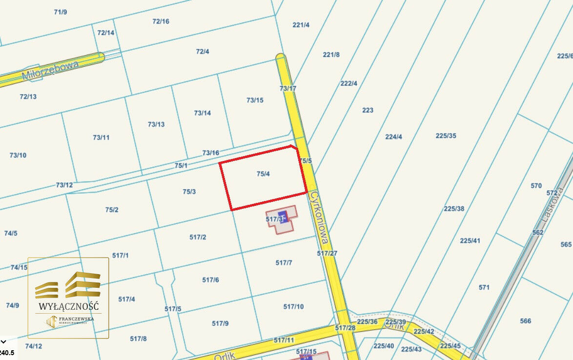 Malowniczo położona działka nr 75/4 o pow. 1543m2 w Kalinówce, ul. Cyrkoniowa.Dojazd od ul. Lipowej i ul. Cyrkoniowej.