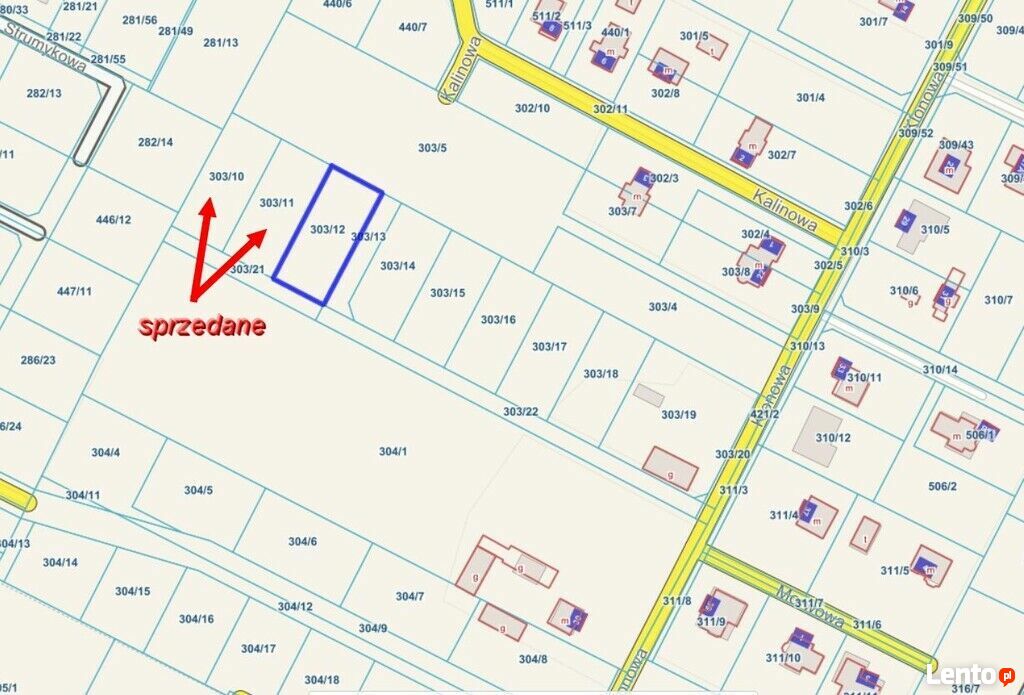 3 DZIAŁKI W KALINÓWCE (boczna ul. Klonowej) każda o pow. ok. 10